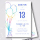 Hand Drawn Casual Birthday Rainbow Balloon Kids Invitation