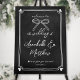 Hand Drawn Bow Whimsical Italian Wedding Welcome Sign. Welcome your guests with this beautifully simple foam core wedding welcome sign. The design features "Welcome to the Wedding of..." at the top, with the bride and groom's names elegantly displayed in the center, followed by "We are so glad you are here!" beneath. The wedding date is featured at the bottom for a refined touch.