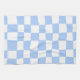 This sky blue and white handmade checkerboard pattern features uneven and wobbly hand drawn light pastel blue and white checkered squares arranged in a wavy grid.