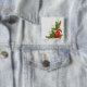Hand-Drawn Christmas Illustration: Holly, Cardinal Pinback Button