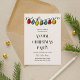 Gorgeous playful and unique holiday party invitation featuring a watercolor string of Christmas lights illustrated on top and coordinating images dancing on the back.