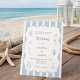 A hand drawn style wedding invitation with beach, coastal theme. A soft ivory and dusty blue striped colored background, with an ivory frame and dusty coastal blue elements. Personalize and add your names and the details.
