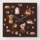 Hand Drawn Coffee Pot, Beans & Cup Square Wall Clock