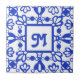 Hand Drawn Delft Blue Ornate Monogram Initial Ceramic Tile