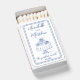 Vintage Minimalist “The Perfect Match” Wedding Matchbox Favors – These timeless matchboxes feature a clean, understated design on a crisp white background with elegant blue fonts for a fresh and classic look. The sleek matchbox design keeps the overall style refined and versatile, perfect for any elegant celebration. At the top, the couple’s names appear in blue text, paired with a hand-drawn doodle of a dining table set with place settings and a candelabra in the center for a charming dinner-party vibe.