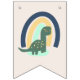 Hand Drawn Dinosaur with Rainbow Happy Birthday Bunting Flags