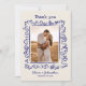 Celebrate your special day and express heartfelt gratitude with this wedding thank you card featuring a whimsical, hand-drawn scribble style frame and personalized photo of the happy couple. Perfect for couples who want to share a romantic moment from their big day while thanking guests for their presence, love, and generous gifts. The front design highlights your favorite wedding photo surrounded by playful blue doodle-style flourishes and elegant handwritten typography, while the back continues the artistic theme with a fun sketch of a champagne tower and your personal message. The cream background and blue ink create a timeless look with a modern twist, making this card suitable for rustic, boho, minimalist, or classic wedding themes. Ideal for couples who love personal, creative stationery with a dash of fun and flair. Professionally printed on quality cardstock, this card is a keepsake your guests will cherish. Custom names and dates add that perfect finishing touch to your post-wedding gratitude.
