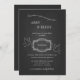 Hand drawn doves around a rustic chalkboard wedding invitation design.