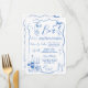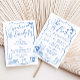 Elevate your wedding reception with these double-sided wedding bar menu cards. Featuring whimsical hand-drawn illustrations with playful wavy and squiggly lines in a serene blue palette. One side showcases your full bar menu, while the other highlights your unique "His and Hers" signature drinks. Perfect for couples who want to add a touch of creativity and fun to their special day. Explore our coordinating items available in-store for a cohesive and stylish look. Cheers to a memorable celebration! (c) Ever After Wedding