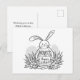 Hand Drawn Easter Bunny Coloring Style Spring Postcard
