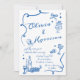 Hand Drawn Elegant Retro Blue Wedding Invitation