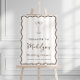 Welcome guests to your event with this modern "Love Is Brewing" bridal shower party welcome sign featuring a trendy hand-drawn wavy border and espresso martini.