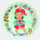 Hand drawn Festive Whimsical Christmas Elf & Candy Classic Round Sticker