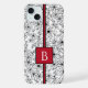 A stylish and feminine floral pattern with a hand-drawn aesthetic. This classic black-and-white pattern has a modern feel softened with sketch look textured line art. Customize this cute phone case with the owner's initial in red for extra personal detail.