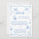 Embrace the whimsy and elegance of our unique, fun, and informal blue and white wedding details card, nestled within a captivating wavy frame. Hand-drawn delights adorn the card, including glasses of champagne bubbling with excitement, love letters penned with tender affection, flickering candles illuminating the path to forever, and a vintage wedding car waiting to whisk you away on a journey of love. Each stroke of the pen captures the essence of romance and celebration, promising an unforgettable union of hearts. Please get in touch with us for design assistance via Zazzle Chat. We will be sure to respond within 12 hours.