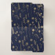 Hand drawn gold cute dried pressed flowers illustration navy blue