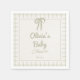 Hand Drawn Green Retro Gingham Bow Baby Shower Napkins
