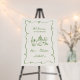 The welcome sign comes in a neutral color scheme of green and ecru.