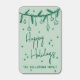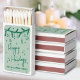 This matchbox features a soft sage green background with artwork and text in rich emerald green for a calm, seasonal look. “Happy Holidays” sits in the center in graceful script, with room underneath for a custom name or short message in a coordinating serif or handwritten style.