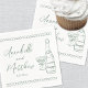 Personalized Hand Drawn Champagne Whimsical Wedding Napkins. This personalized wedding cocktail napkin features a charming and minimalist design, perfect for adding a special touch to your celebration. A delicate illustration of a champagne bottle and glass is prominently displayed, symbolizing the festive occasion. The bride and groom's names and wedding date are elegantly showcased beneath the artwork in a mix of handwritten script and simple font, creating a stylish yet approachable look. Styled in a soft sage green and white palette with subtle European-inspired charm, this design adds an extra layer of relaxed elegance.