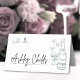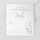 On the right side, a cheerful illustration of a champagne bottle and glass with heart accents in soft sage green adds a festive touch. The back includes the bride and groom's names, the wedding date, and a simple hand-drawn bow, all in matching sage green, for a sweet and personal detail.