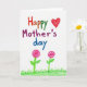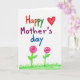 This card features a childlike drawing style that feels like a sweet note shared between loved ones ❤️. Centered on the white background, the message “Happy Mother’s day” is written in large, hand-drawn letters, with “Happy” in red and orange, “Mother’s” in magenta, and “day” in blue. The words take up most of the space, as if the writer wanted the greeting to be the first thing Mom sees. In the upper right, a bright red heart sits slightly above the lettering, like a little kiss added at the last second. Near the bottom, two simple flowers rise from a strip of green grass, leaning gently as if they’re growing toward each other in friendly closeness 🌼. Each flower has rounded pink petals with a spiral look, held by green stems with small leaves. The coloring shows visible crayon-or-marker texture, and the heart, flowers, and grass stand out clearly against the plain white background.