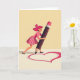 This Valentine’s Day card features a joyful scene centered on a cheerful woman creating art. She smiles with her eyes gently closed, clearly enjoying the moment. Dressed in soft pink tones, her hair is styled in a heart-shaped bun that mirrors the theme of love. She holds an oversized dark brown pencil, carefully drawing a bright red heart on a warm, creamy background. Subtle shadows add depth, making the pencil and heart feel larger and more expressive. The simple backdrop keeps the focus on her and the artwork. At the bottom, the message “Love is Art” appears in a mix of flowing script and bold lettering, tying the design together. This card celebrates creativity, passion, and heartfelt expression—perfect for sharing Valentine’s Day love. ❤️