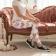 The dainty interlinked rosette design at the waist is truly unique. The poly-spandex makes for a nice fit and available in sizes 0-16. The printing is vibrant and eye-catching.