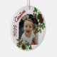 Hand Drawn Holly & Pinecones Christmas Photo Ceramic Ornament