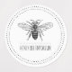 Honey bee in circle logo hand drawn style illustration product stickers for an apiary, beekeeper, honey products maker, soap maker or candle make or other bee derived products business and profile cards. Customize with your own information. Order in larger quantities for greater savings.