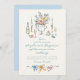 The palette features dusty blue, blush pink, pale yellow, and warm peach... The bows can be removed, and the floral vase illustration can be repositioned to the center or bottom. The front background is a soft ivory and the back a gentle dusty blue — both fully customizable in the editing tool.