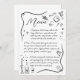 Encased within a whimsical wavy frame, this unique, fun, and informal wedding collection combines sophistication and playful charm. Hand-drawn elements adorn the invitation, featuring a delicate engagement ring symbolizing eternal love, a decadent wedding cake promising sweet beginnings, champagne clinking in celebration, and joyful cheers echoing. Blooms and candles add a touch of romance, while visions of a romantic dinner under the stars dance across the design. Please get in touch with us for design assistance via Zazzle Chat. We will be sure to respond within 12 hours.