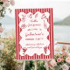 Featuring hand-drawn illustrations of beloved Italian favorites—pasta, wine glasses, martinis, wine bottles, lemons, olives, tomatoes, and grapes on the vine—this design brings a relaxed European flair to your Galentine’s décor. The modern red and pink striped background paired with a playful squiggle doodle frame creates a stylish, inviting look that feels fun, festive, and Instagram-ready from the moment guests arrive.