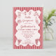 Featuring hand-drawn illustrations of Italian favorites—pasta, wine, martinis, wine bottles, lemons, olives, tomatoes, and grapes on the vine—this design brings a warm, European-inspired charm to your celebration. The modern red and pink striped background paired with a whimsical squiggle doodle frame adds a fun, trendy touch that feels effortless, inviting, and Instagram-ready.
