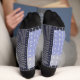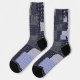Dark blue socks with traditional japanese sashiko printed design that resembles stiches and patches.