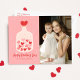 Cute Valentine's day photo postcard featuring a hand-drawn illustration of a jar filled with red and pink hearts with a textured pink background. Personalize the front of the jar of hearts Valentine's day postcard with a custom greeting, your name, and a vertical photo. The back of the postcard features your return address and personal message displayed in red lettering.