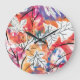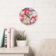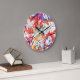 Hand Drawn Lemons, Blue Leaves Pattern. Large Clock