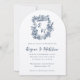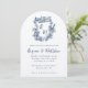 Hand Drawn Navy Blue Floral Crest Monogram Wedding Invitation