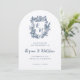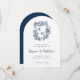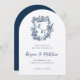 Hand Drawn Navy Blue Floral Crest Monogram Wedding Save The Date