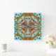 Hand Drawn Owl Mandala Artwork in orange, brown, blue and green wall clock.