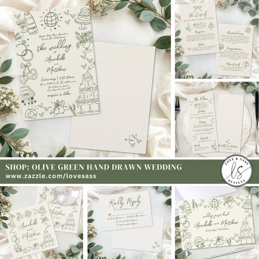Hand Drawn Olive Green Whimsical Retro WeddingDesigned by JJ Marie