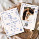 Hand Drawn Photo QR Code Blue Whimsical Wedding Invitation