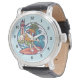 This is a Very Fun and Colorful Hand Drawn Pineapple Surfer Abstract Wrist Watch