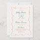 Hand Drawn Pink Green Bow Baby Shower Invitation