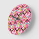Hand Drawn Pink Zig Zag Pattern Round Clock