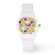I only have one complaint. I ordered the watch with clear case and strap, and what was sent was white case and strap. I'm going to keep it because 1) it looks very nice in white, and 2) it would take too long to get a replacement made and sent in time for my occasion. Aside from the mix up with the color, the watch does look very good in white. The purple dial is actually sparkly which did not show in the online images. That was a nice surprise. If you like Swatch watches this is very similar to those. It's 33.6mm in diameter, 10.5mm thick, and 40.6mm lug to lug. Stainless steel case back says 3ATM/30m WR, so no swimming or showering or submerging this one. If you like Woodstock, this is a great choice.