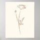 Hand drawn boho botanical line art illustration, cottagecore wall art. Simple poppy flower print. Minimalist abstract floral design. Modern, neutral, earthy color palette, tan brown drawing on beige background.