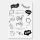 Graduation party sign featuring hand drawn illustration of school related motifs. Black and white.