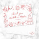 This playful and heartfelt thank you card features a charming design inspired by European-style sketches, perfect for couples who want a fun and unique way to say thanks. The front showcases hand-drawn illustrations in white and red—like champagne towers, disco balls, cameras, wedding bells, hearts, and more—surrounding the center where "Thank You" is written in a simple, handwritten-style font. Just below, the couple's names and wedding date are displayed for a personal touch.