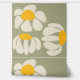 Hand Drawn Retro Dasies Big Floral Green Wallpaper
